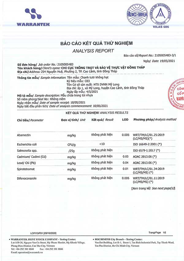 Chanh tươi không hạt (hay còn gọi là chanh Vonka) là một giống cây trồng xuất xứ Nam Mỹ đã được nhiều hộ dân trên địa bàn Xã Mỹ Long (Huyện Cao lãnh) tiên phong trồng thử nghiệm thành công từ năm 2007. Ưu điểm của giống cây này là có thể cho trái quanh năm, trồng một năm là đã có thể thu hái và tuổi thọ trên 10 năm.